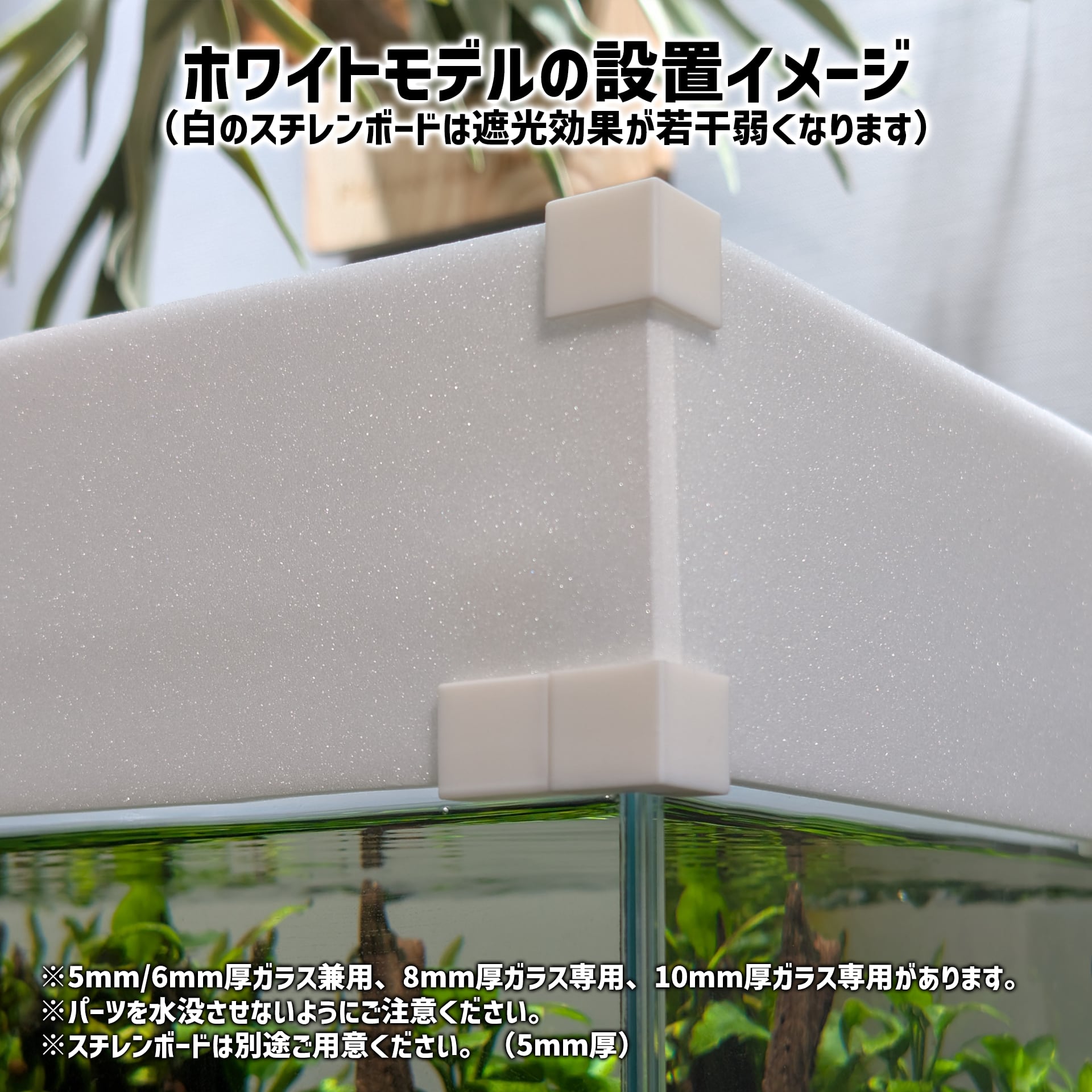 本品単体では使用いただけません。別途水槽サイズに合った5mm厚のスチレンボードをご用意ください(ダイソーやホームセンターで購入できます)