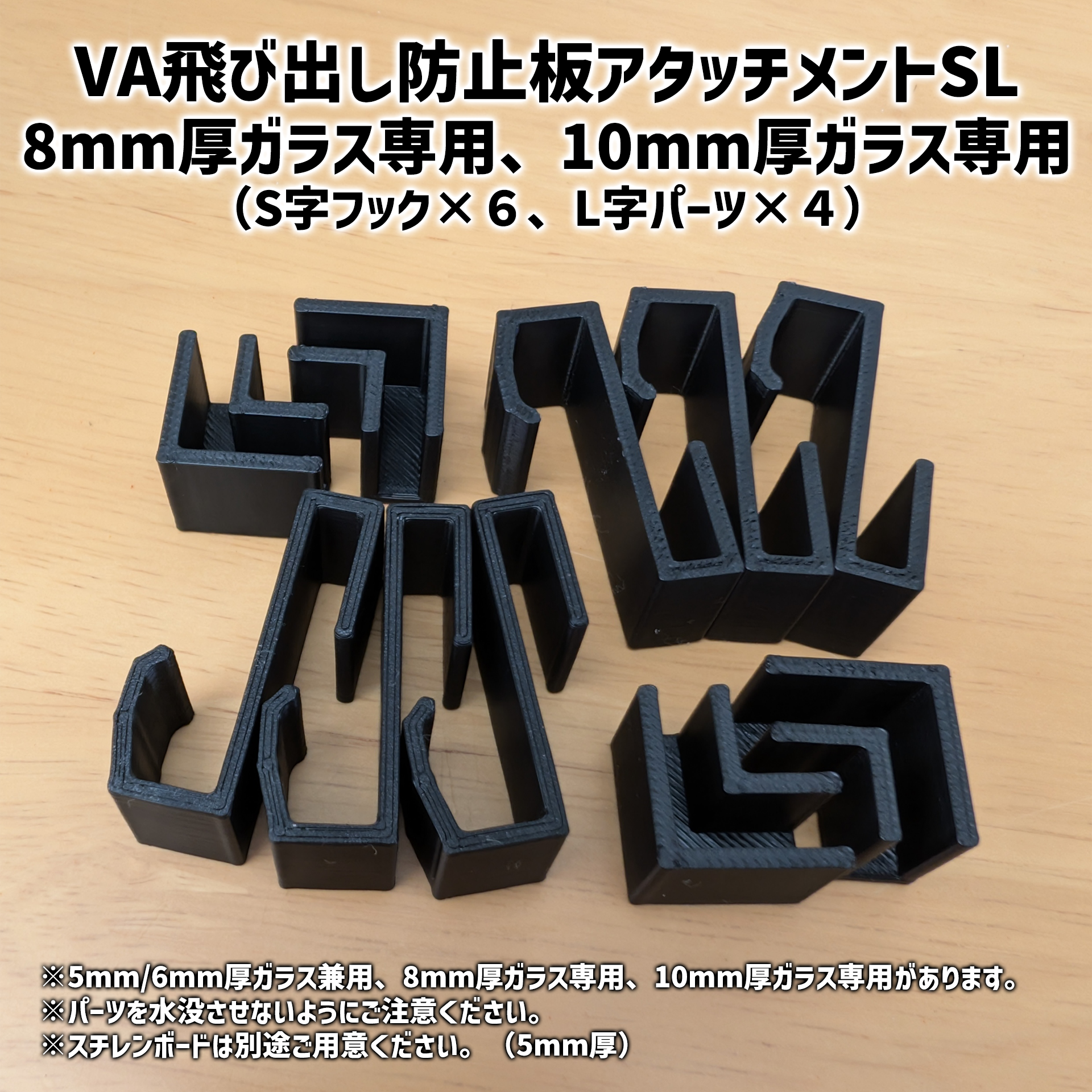 8mm厚ガラス専用、10mm厚ガラス専用…S字フック6個、L字パーツ4個(合計10パーツで1セット)
