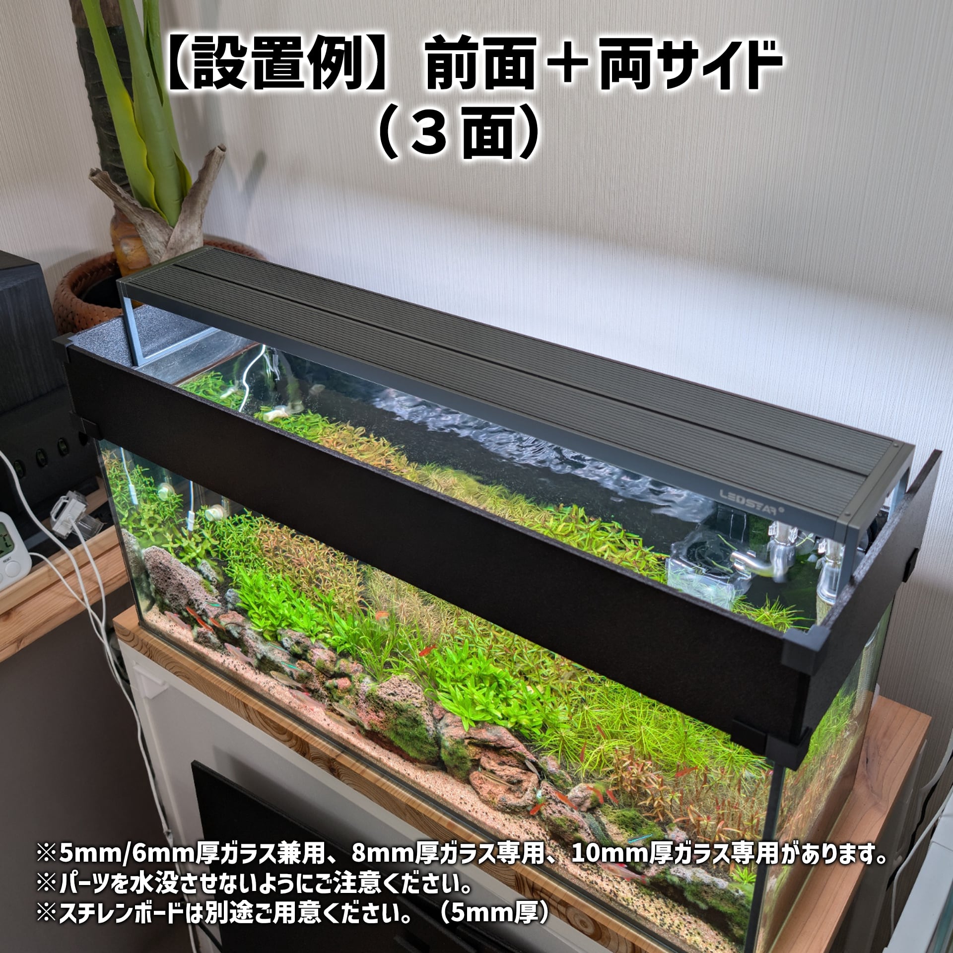 【こちらは約3cm水槽上面を覆い設置するタイプです】